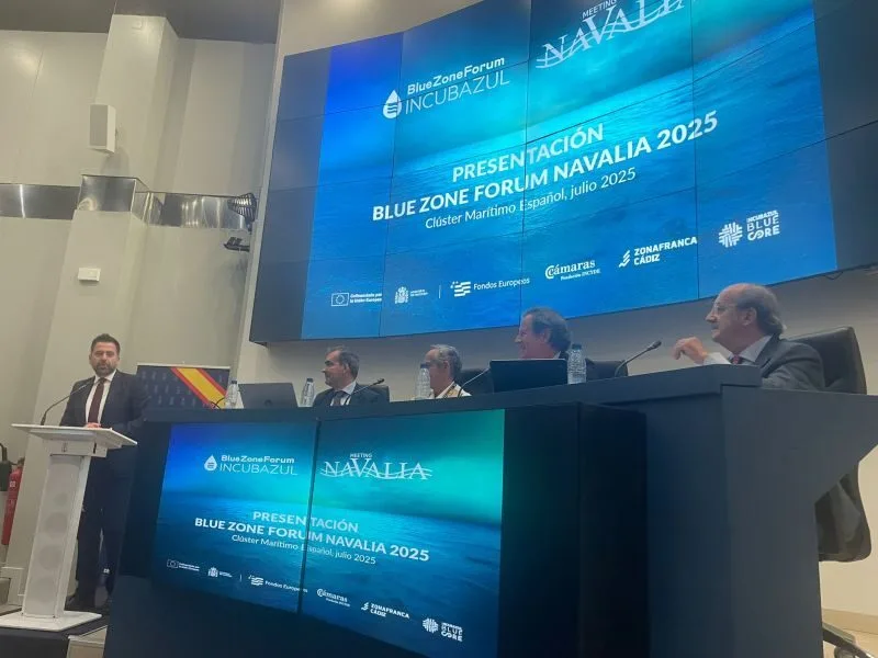 El delegado del Estado en la Zona Franca de Cádiz, Fran González, presentó en Madrid, en el marco de la asamblea general del Clúster Marítimo Español, la nueva edición del Blue Zone Forum. El evento, que este año se celebrará conjuntamente con el encuentro internacional de construcción naval Navalia Meeting, tendrá lugar del 24 al 26 de septiembre en el Palacio de Congresos de Cádiz bajo la denominación Blue Zone Forum–Navalia Meeting 2025.
