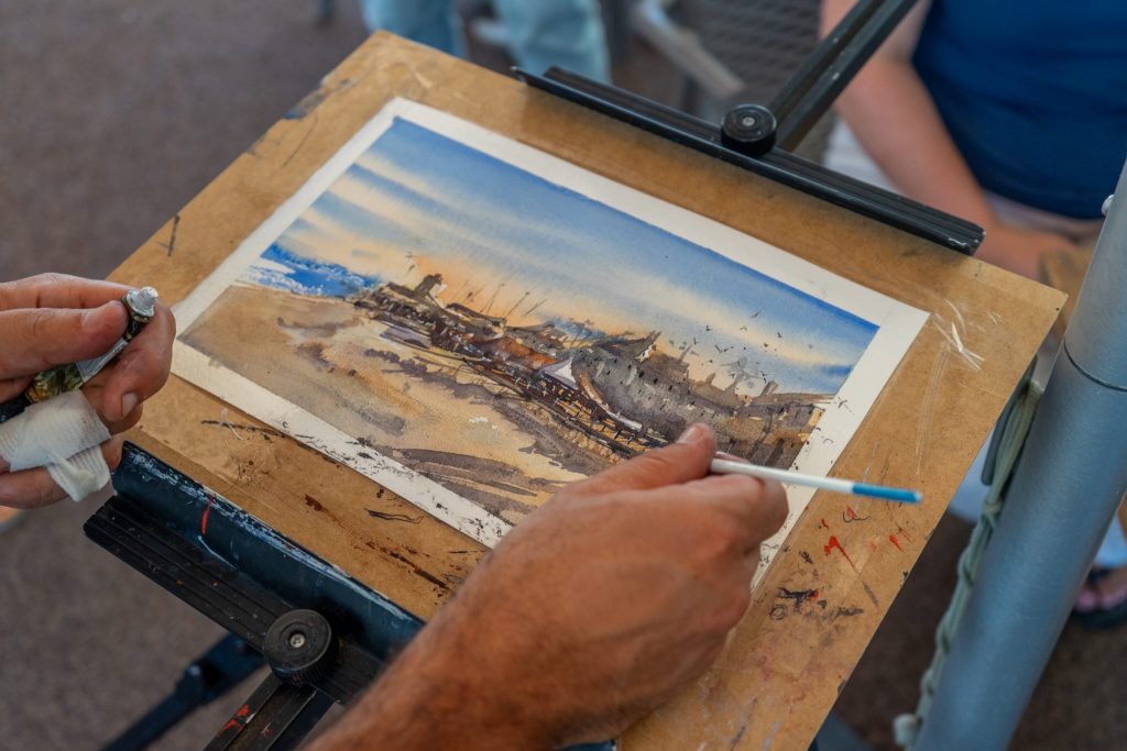 La primera parada se celebró en Chambao Chiringuito, en Torreguadiaro, donde el artista murciano Paco Hernández ofreció un espectáculo de acuarela en directo frente al mar, acompañado por un público cercano y participativo. El evento se desarrolló en un ambiente acogedor y colaborativo, con el apoyo entusiasta del equipo de Chambao, que facilitó la realización de esta primera jornada.