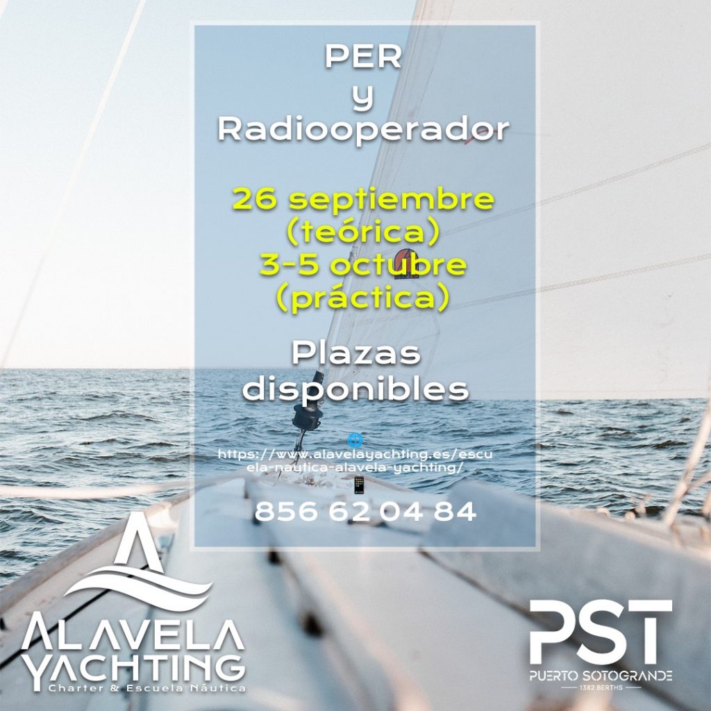 Puerto Sotogrande colabora con Alavela Yachting en el desarrollo de prácticas oficiales para titulaciones náuticas durante los meses de septiembre y octubre, con sede teórica en Marina Plaza, Ribera del Marlin 23, local primero, y sesiones prácticas en aguas de Sotogrande y el Estrecho de Gibraltar. El calendario se inició el 26 de septiembre con una clase teórica y continúa con las prácticas del Patrón de Embarcaciones de Recreo (PER) y del curso de radiooperador entre el 3 y el 5 de octubre. Del 11 al 13 de octubre están programadas las prácticas de Patrón de Yate y Capitán de Yate.